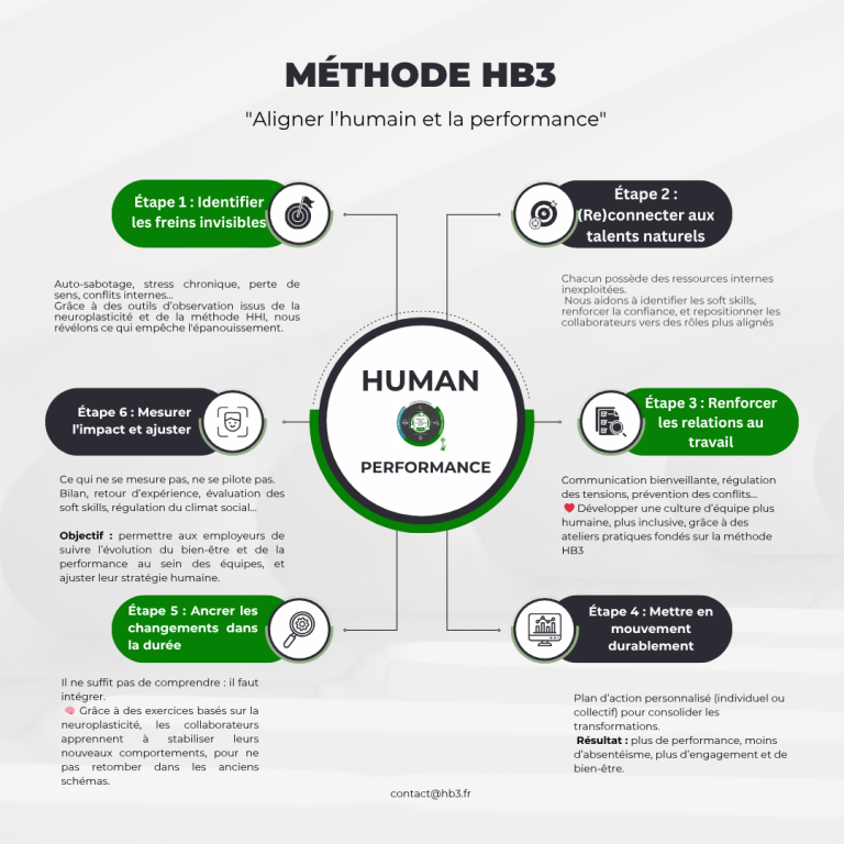 En aidant chaque individu à se dépasser, HB3 contribue à créer des équipes plus inclusives, innovantes et cohérentes. Nous croyons fermement que la diversité, lorsqu’elle est comprise et valorisée, devient un véritable moteur de succès pour les entreprises et les organisations.